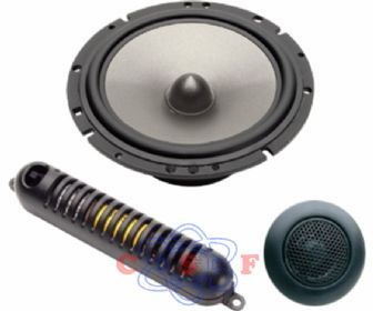 Kit 2 Vias composto de mid bass de 6" com divisor acoplado, tweeter de 1" e divisor de freqüência.